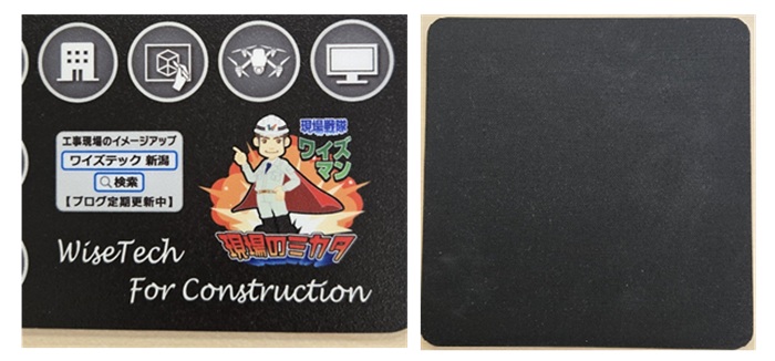 会社名は控え目なデザインで、建設業に関係ありそうなカッコかわいい「ピクトグラム」が配置されていて、シックで汚れの目立たないブラック仕様!!