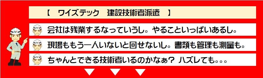 それにより【 適材適所 】を実現することができ、御社(お客様)にとっても、御社のご担当者(所長・現場代理人様)にとっても、当社の建設技術者にとっても、そして当社ワイズテックにとっても【 四方にプラスになる建設技術者派遣 】を目指しております。