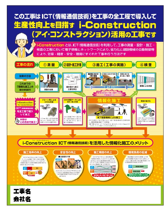 ※工事名・会社名・タイトルシールを方眼に沿って自由な場所に貼って、掲示物のサイズや種類に合った安全掲示物の看板を造り上げてください