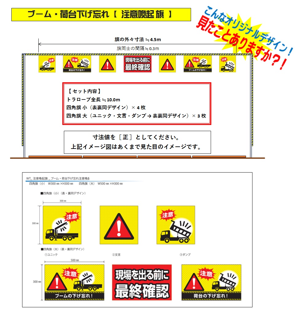 ブーム・荷台下げ忘れ注意喚起旗 【 品番 BNWH 】