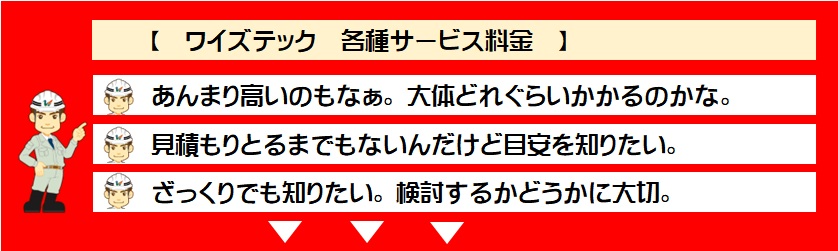 ◆ 各種サービスのモデル料金を【参考としてご紹介】致します。◆【実際のご注文時】は、それぞれの現場での違いがありますので【お見積り】致します。